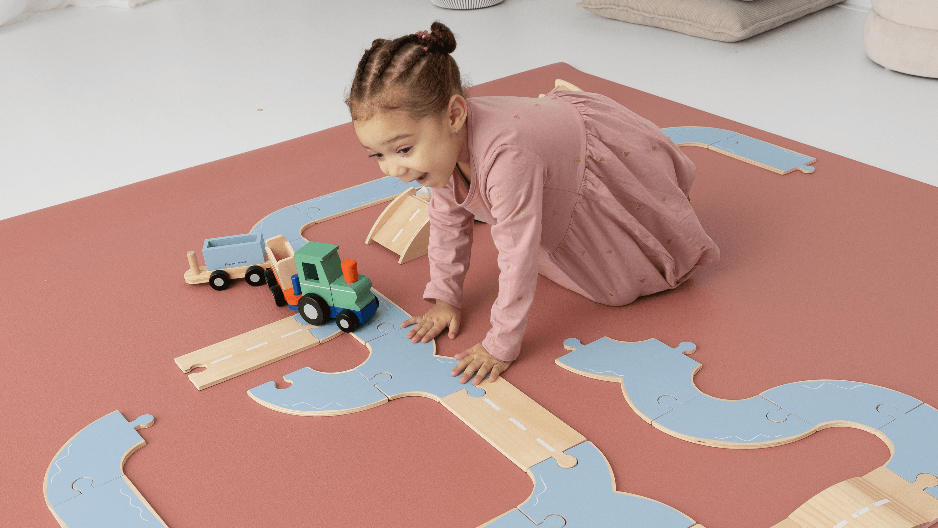 Op deze kindermat kan uw kind veilig en zorgeloos spelen. De mat is zacht en comfortabel, en biedt voldoende schokdemping bij een val.